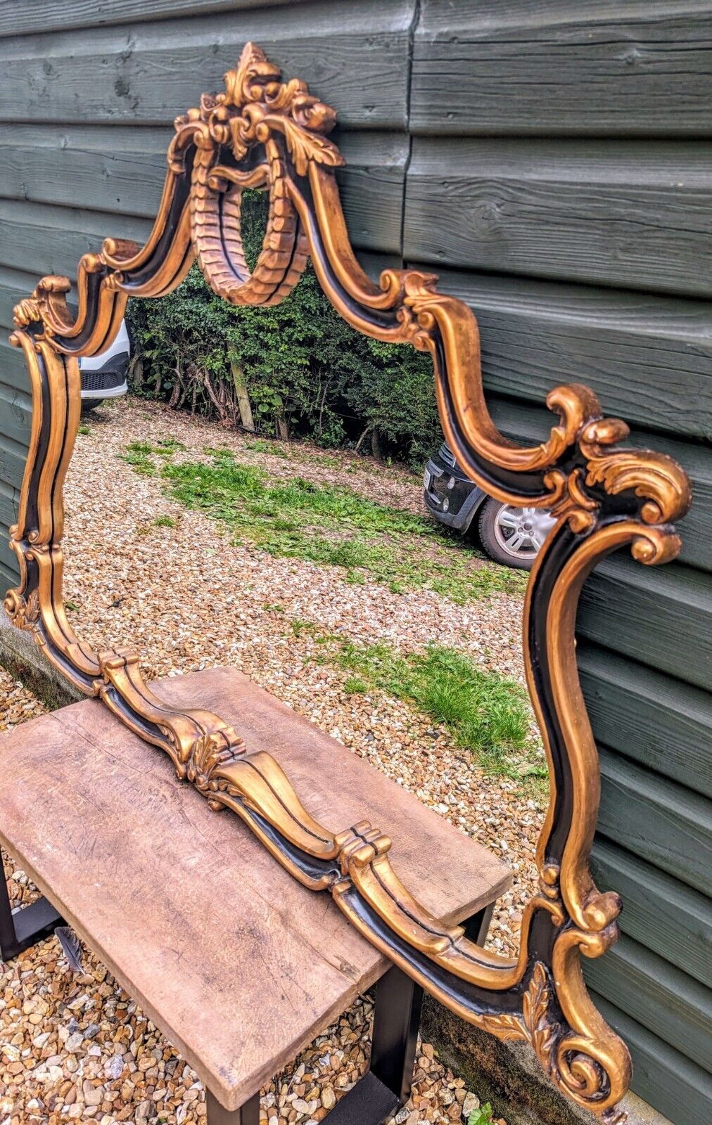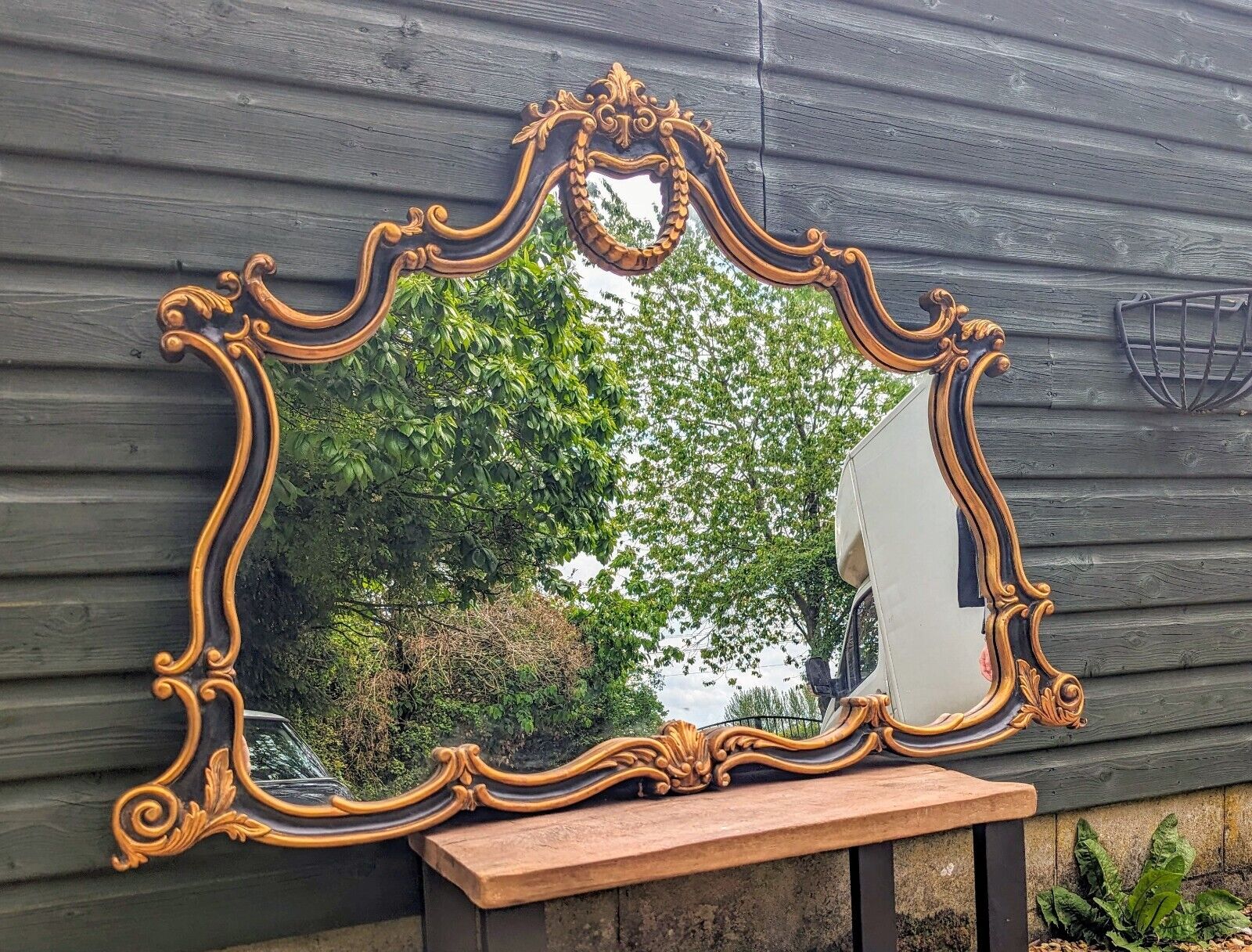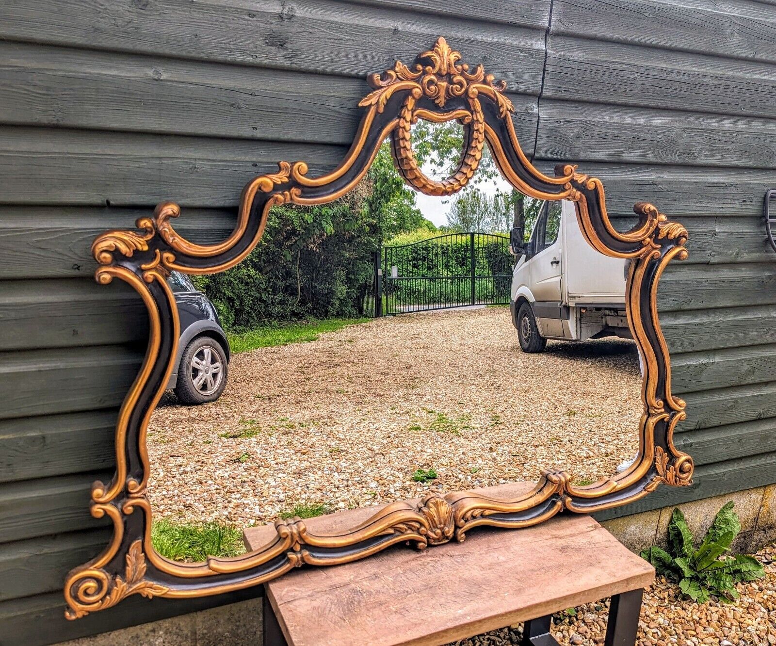 Vintage Rococo 19th Century Style Black & Gilt Mirror - Free UK Delivery