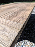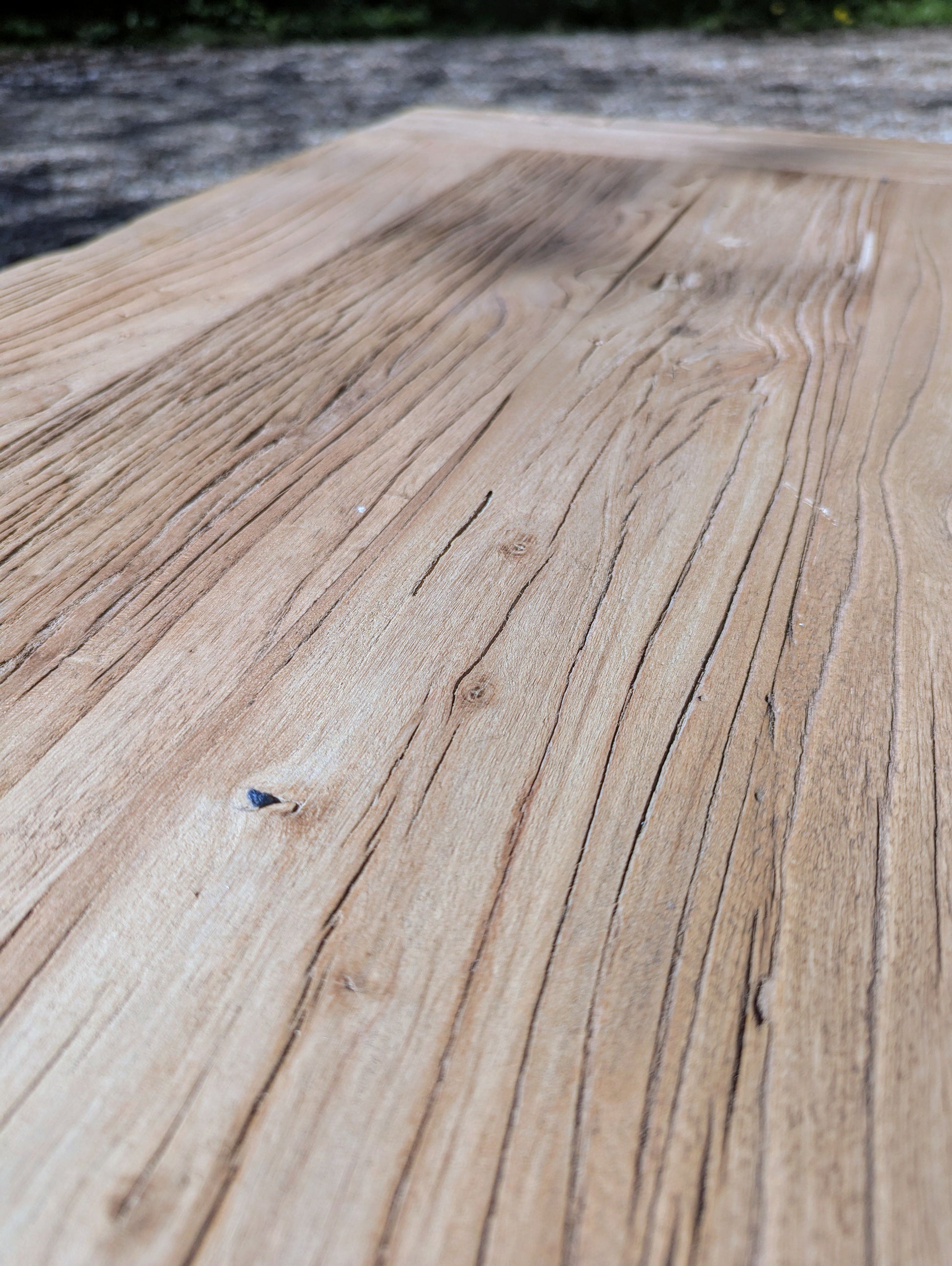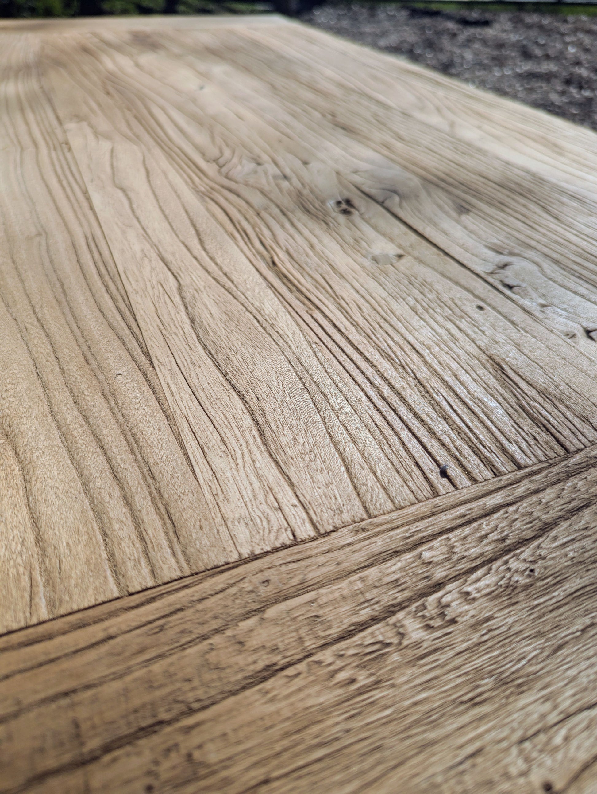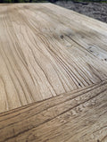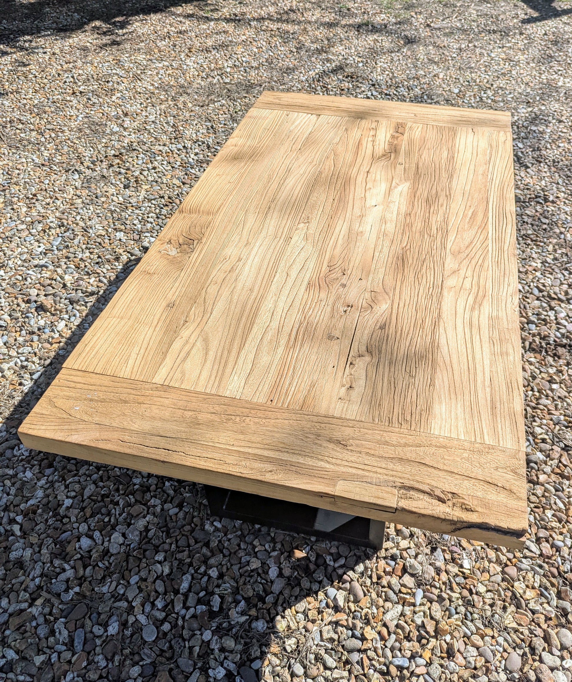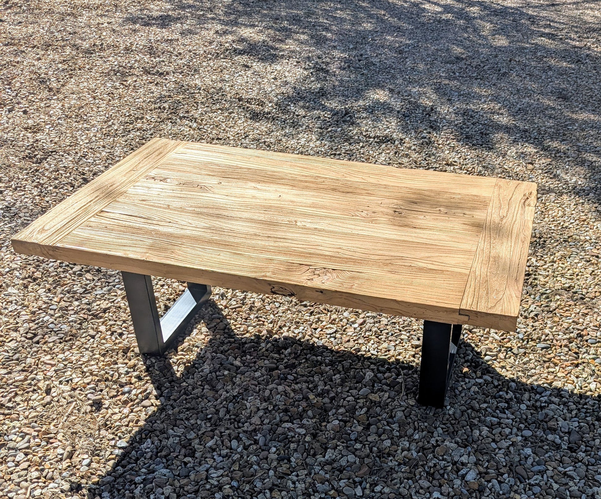 SUPERB VINTAGE RUSTIC RECLAIMED ELM COFFEE TABLE ON THICK SOLID BLACK STEEL LEGS INCLUDING RUBBER FEET FOR WOOD / NON CARPET FLOORS.
