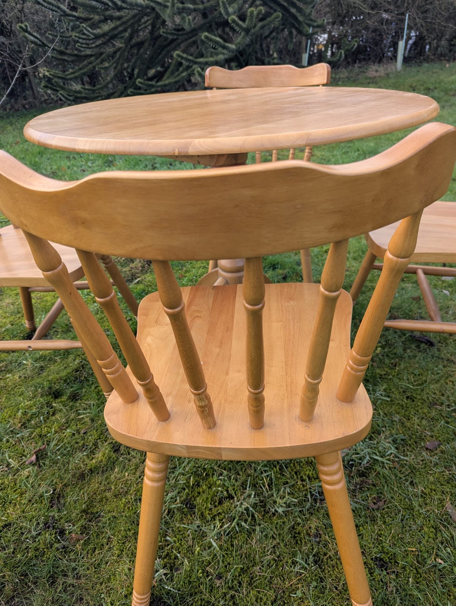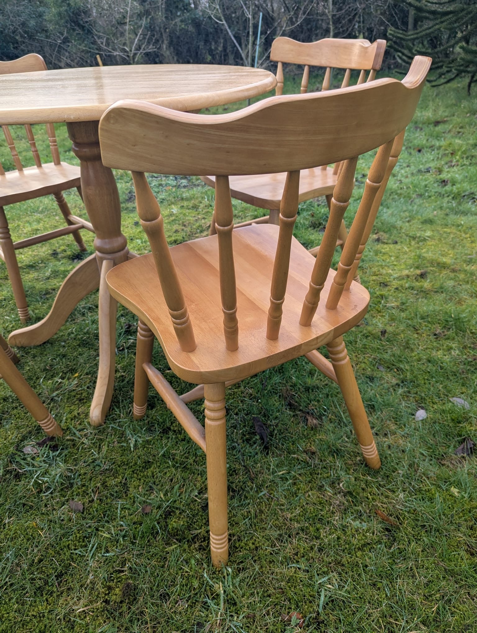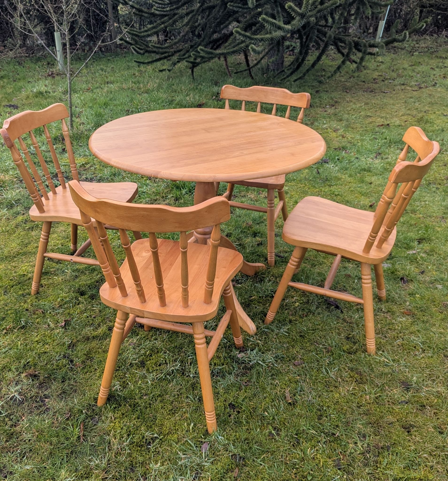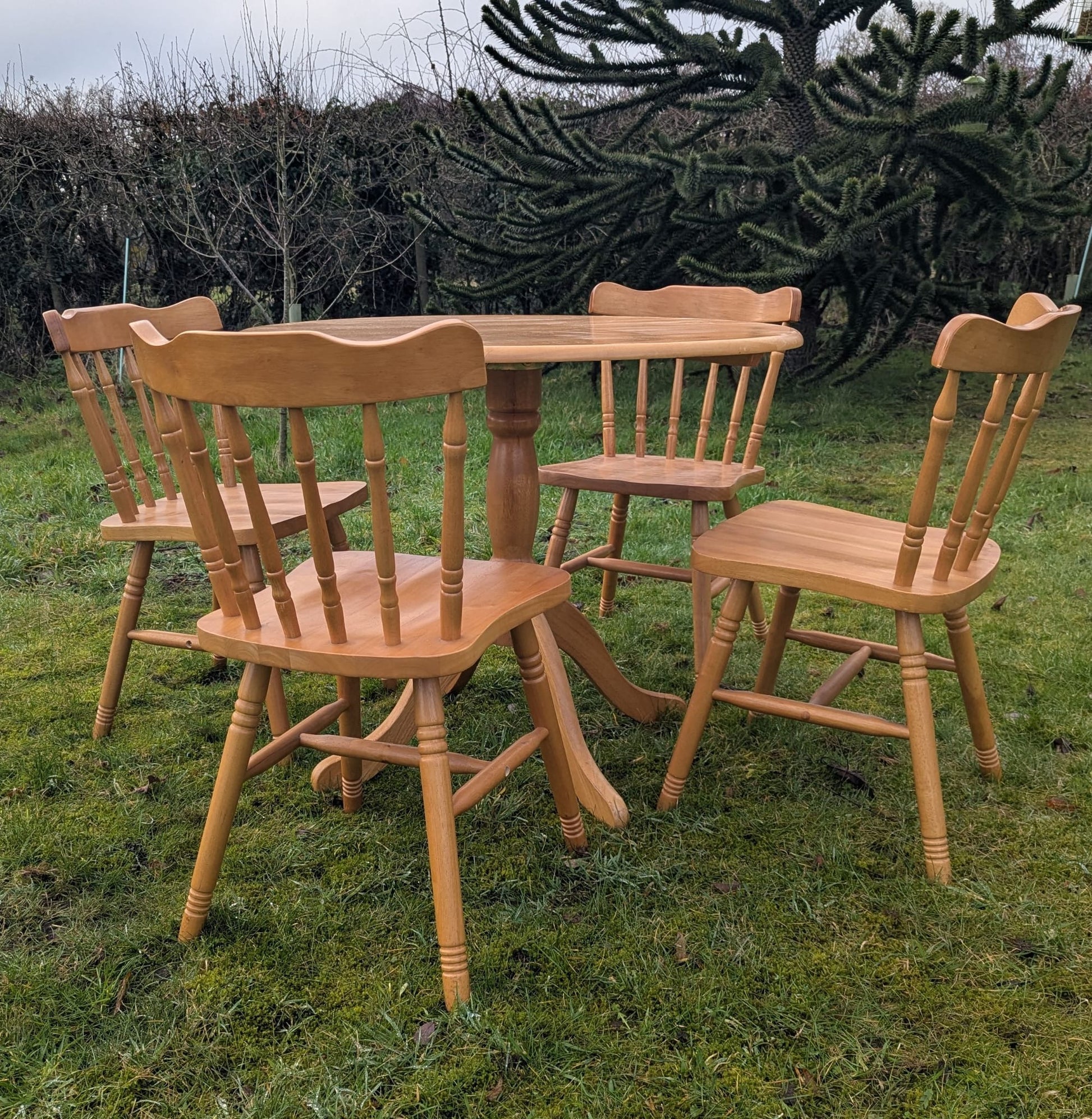 Vintage style Beech farmhouse dining table & 4 chairs - Delivery available.