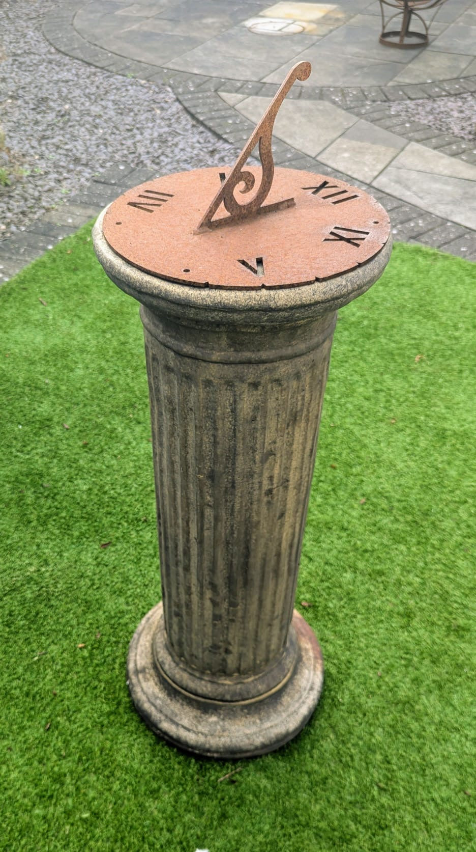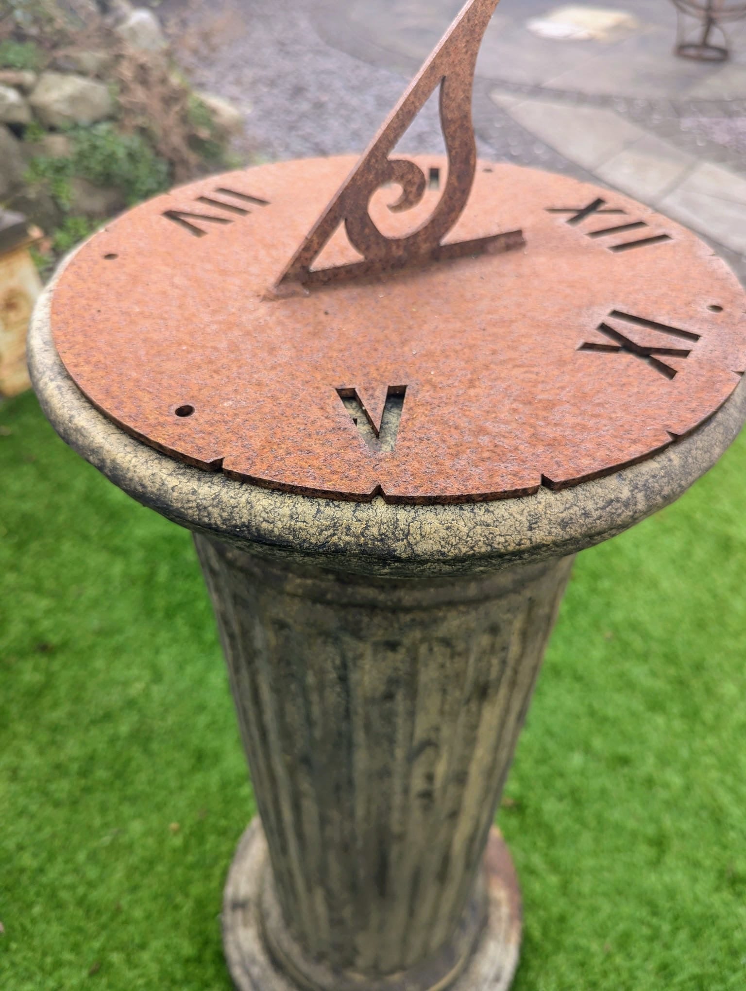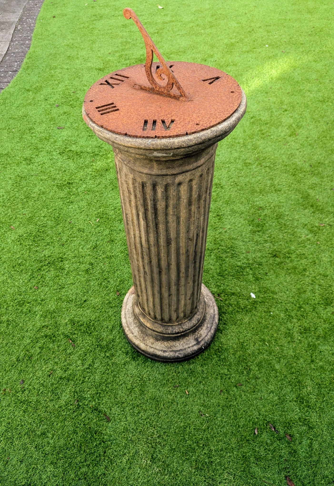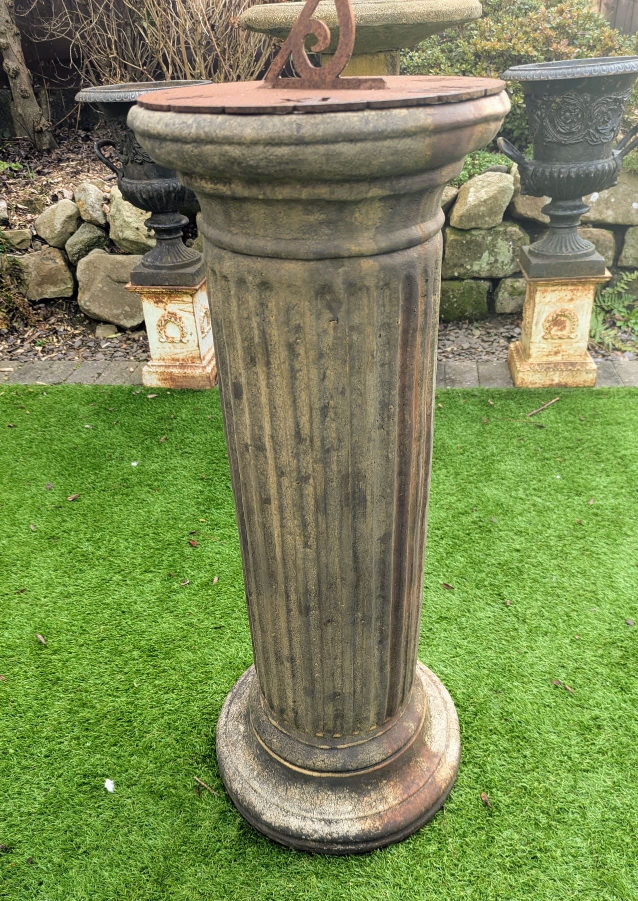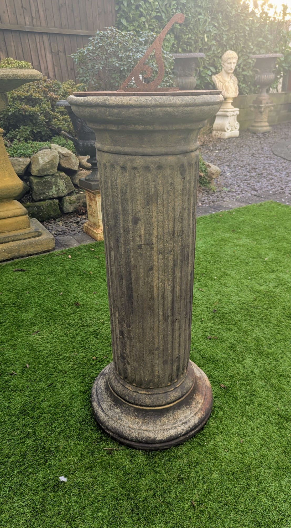 Vintage style English Stone reeded Sundial garden column - Delivery available
