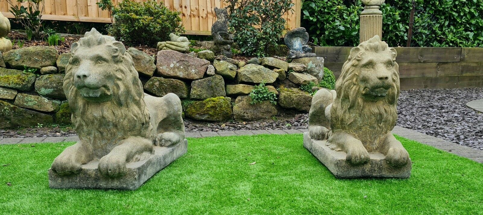 Langport Lions garden ornament English stone - Free UK Delivery