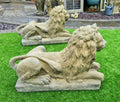 PAIR OF FANTASTIC DETAIL LAYING LANGPORT LIONS.