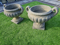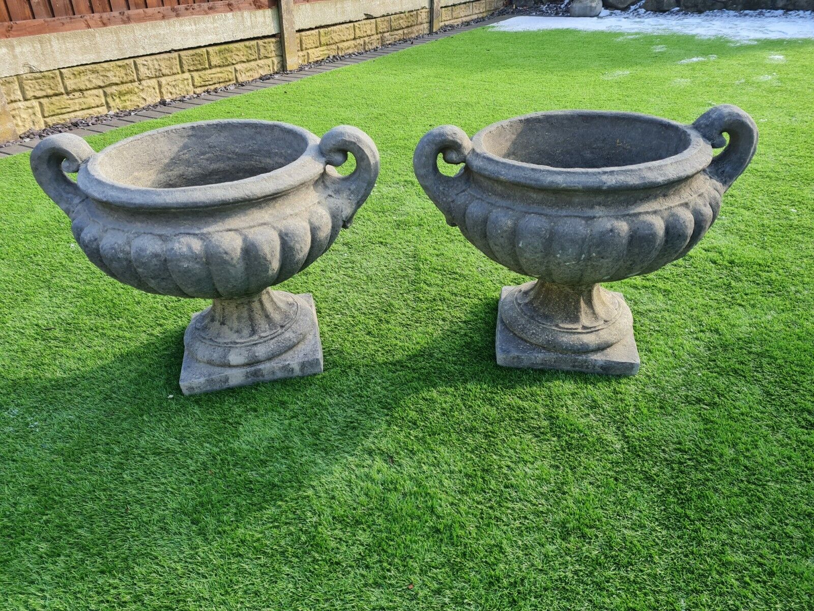 Hand casted in England from locally sourced English Country Stone including shiny Quartz. The Urn has a unique finish that will enhance as time goes by outside in the elements. Frost proof, weather resistant hard wearing antiques of the future.
