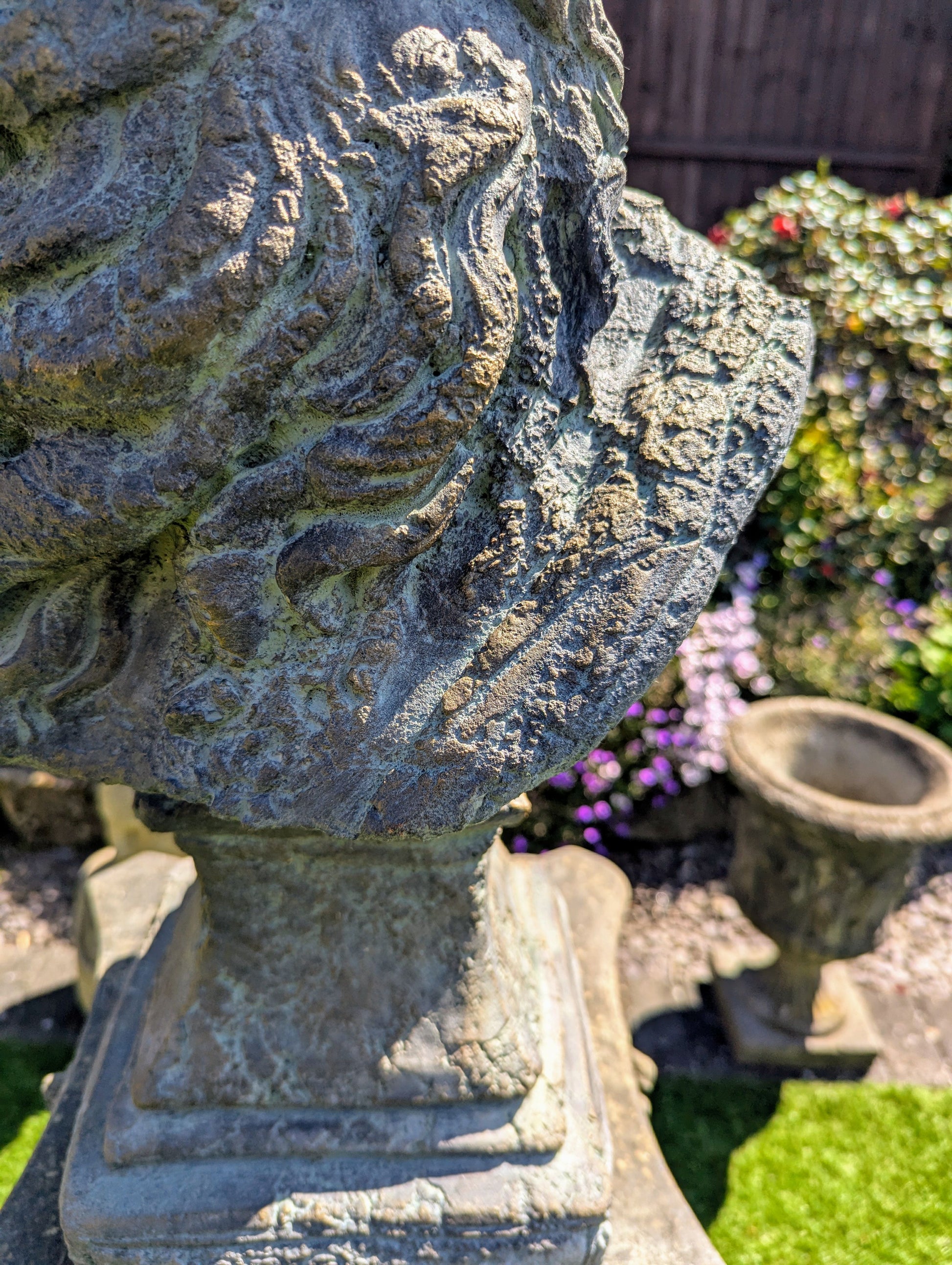 Hand casted in England from locally sourced English Country Stone including & Bronzed. The item has a unique finish that will enhance as time goes by outside in the elements. Frost proof, weather resistant hard wearing antiques of the future.